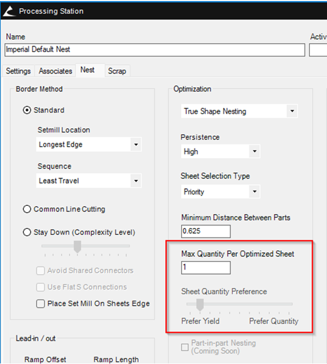 - The slider will be greyed out whenever the Max Quantity Per Optimized Sheet text box is set to a value of 1 or less. If a value of 0 or less is entered, the text box will automatically raise it to a minimum value of 1. Previously, if the value was set to 0, it would reset to a default value of 5 when the Processing Station was closed and re-opened.