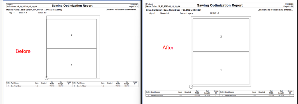 - An issue would sometimes occur during nesting operations, wherein parts with perfect graining applied would sometimes grain match incorrectly, resulting in incorrectly placed parts or software errors to occur.