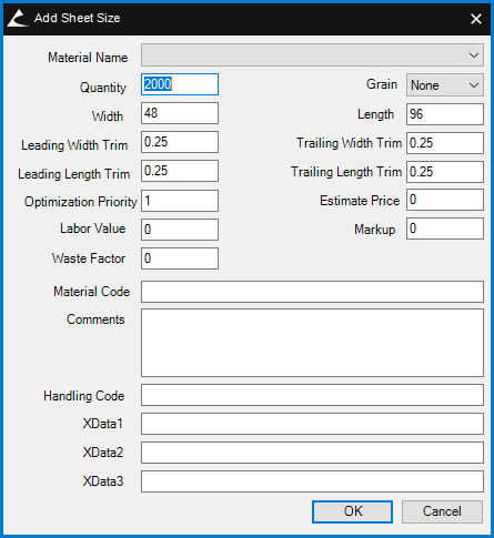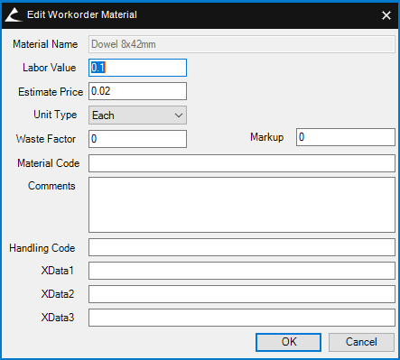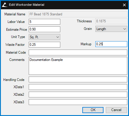 Fig. 09 – Edit Workorder Material (Solid Stock Materials)
