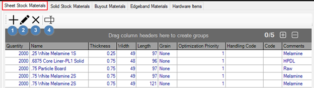 As of build 20.1.1124.641, the Material Sheets section of the Modify Work Order interface has been split into the following tabs: