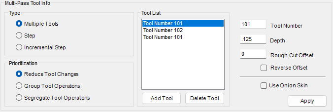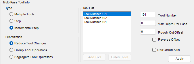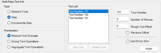 - Multi-pass tools can be set up to use multiple tools or use a single tool using steps or incremental steps.