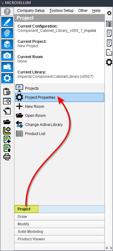 Click the Project tab on the Toolbox palette, and click Project Setup.