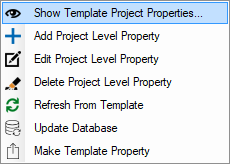 Show Template Project Properties to display a list of all the template level properties. These are the properties that will display by default each time a new project is created.