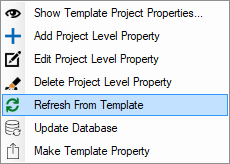 to reset all the User Defined Project Properties to their default state as defined in the list of template properties. This command may delete properties that are not defined as template properties.