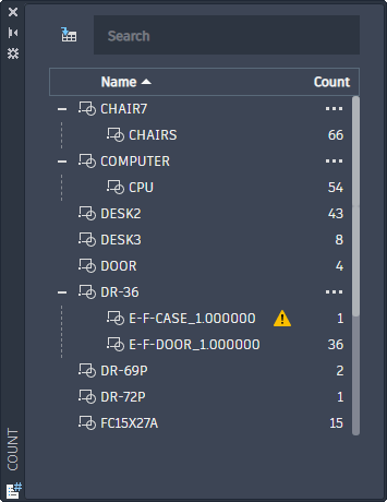 Quickly and accurately count the instances of objects in a drawing. You can insert a table with the count data into the current drawing.
