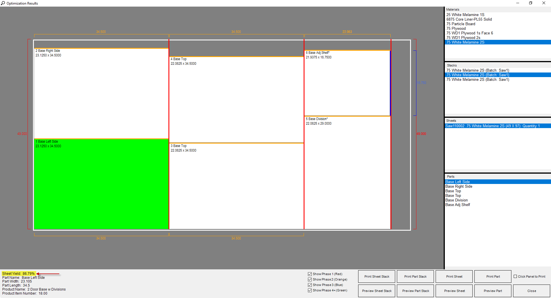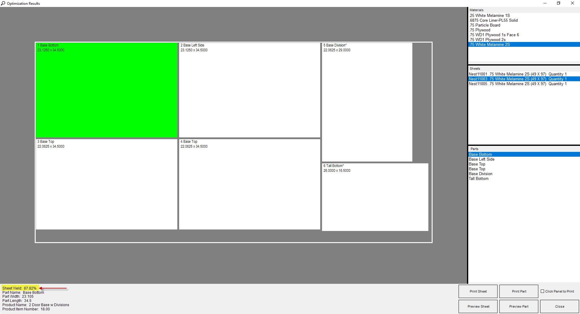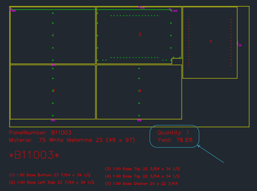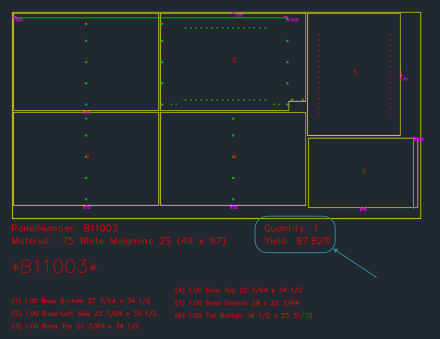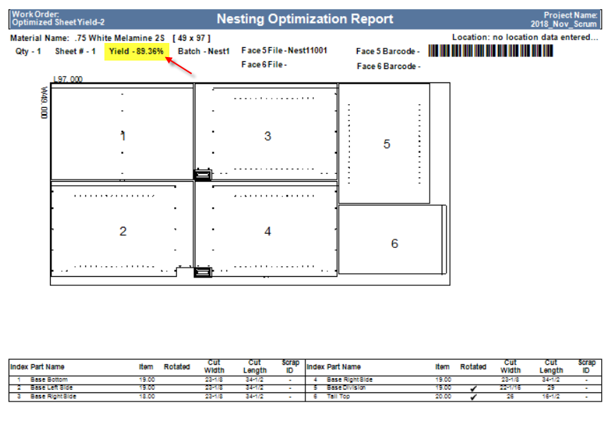 You are now able to view the sheet yield when viewing or printing the composite nest drawing, when viewing the sawing pattern layout and nested pattern layout, or you can add it to any reports utilizing PlacedSheets table data.
