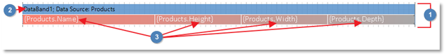 - Reference to the data source. Text components are placed in the Data band. References to data source fields are created. When processing, all references are changed to data.