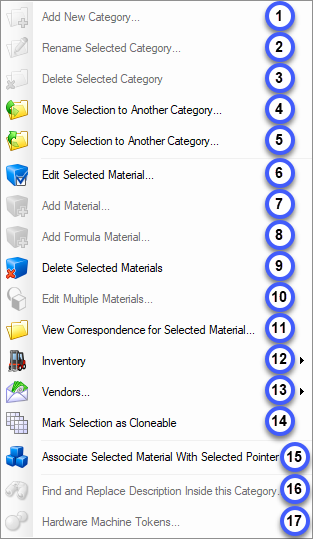 - Move Selection to Another Category – Allows you to move materials to another category.