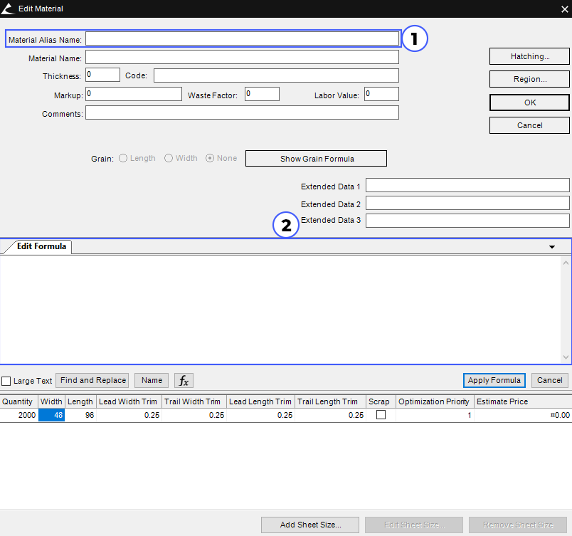 - Add Formula Material – Allows you to add a new formula-driven material (for advanced users only).