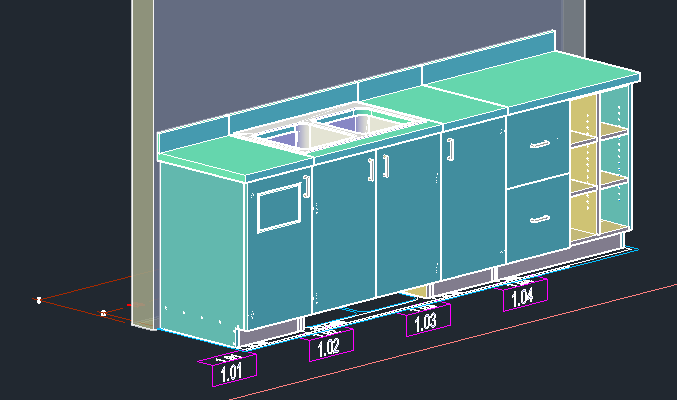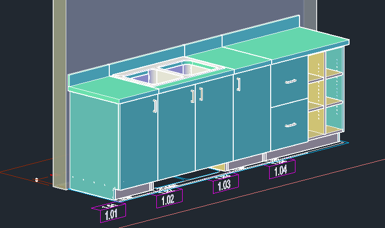 Here is a series of cabinets drawn straight from the library displayed in the AutoCAD Conceptual Visual Style.