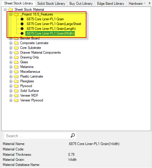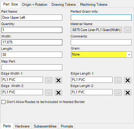 One is the ability to set the grain of a material or an individual part. Setting the "material grain" to the width or length of the material means that you are determining that parts from that material should be cut with the grain running either with the width of the part, or the length of the part. Usually, this is set to the material length, but it is also possible to set it to Width if needed, or None for non-grained materials. You may also set the "part grain" property of a particular part to be either Force Width, Force Length, or None. In Microvellum, this is called Material Graining, or Part Graining.