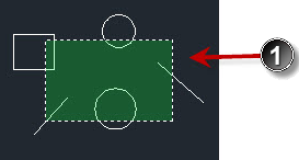 A crossing window selection will select all the objects that are within any part of the window. Specifying the corners from right to left creates a crossing selection. The crossing window will have a dashed border for the rectangle.
