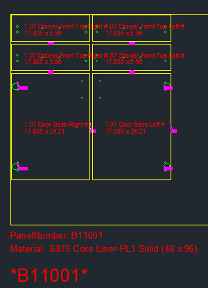 When running this cabinet through the optimizer, it will group all the parts with #1 together and the parts with #2 together. If there are multiple cabinets like this, different numbers will need to be put in for the different cabinets as it will try and group all like numbers.