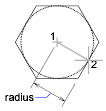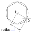 Specifying the radius with your pointing device determines the rotation and size of the polygon. Specifying the radius with a value draws the bottom edge of the polygon at the current snap rotation angle.