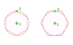 Specifies the location of the center of the polygon and whether the new object is inscribed or circumscribed.