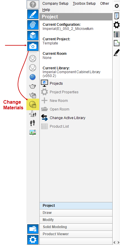 Applying MaterialsThe materials for a drawing can be changed using the Apply Materials interface. To access the interface, click on the Visual Style menu icon the tool strip, and then click on the Change Materials icon. The Apply Materials interface ...