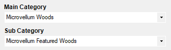 Filter the materials displayed to help find the correct material using the dropdown boxes for Main Category and Sub Category.