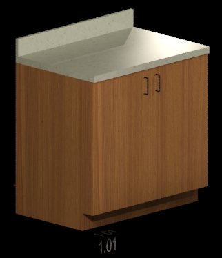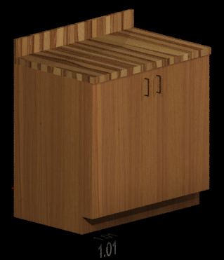 In the examples below, the default material assigned the AutoCAD layer 3D_COUNTERTOP was “EVEREST.” We reassigned it to an “ash-olive” material with the method described in the preceding paragraph with the visual differences you see below.