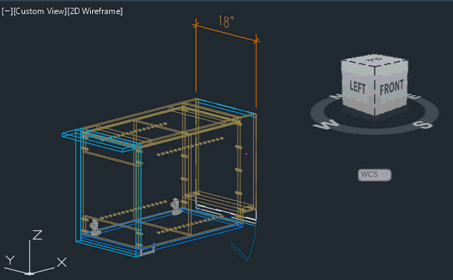 In the animation below, after a PLINE is drawn and the viewpoint is set to SW, you can see the 3D cabinet drawing shift to an orientation that does not match the WCS or the ViewCube.