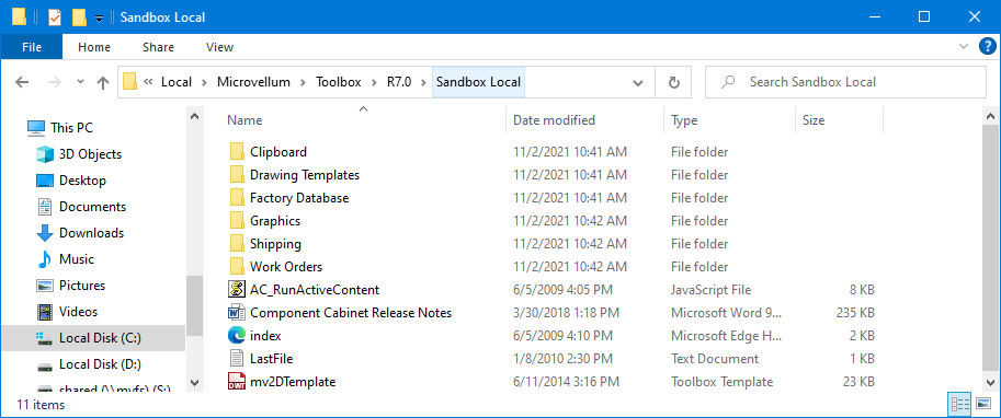 NOTE: To save time and Hard Drive storage, you may want to create your Sandbox Local folder structure and pick and choose just a few test projects and work orders to copy along with your core Microvellum data, instead of copying the whole folder structure and all contents.