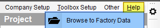 - At the top of the main Toolbox palette, hover over “Help” and select “Browse to Factory Data."