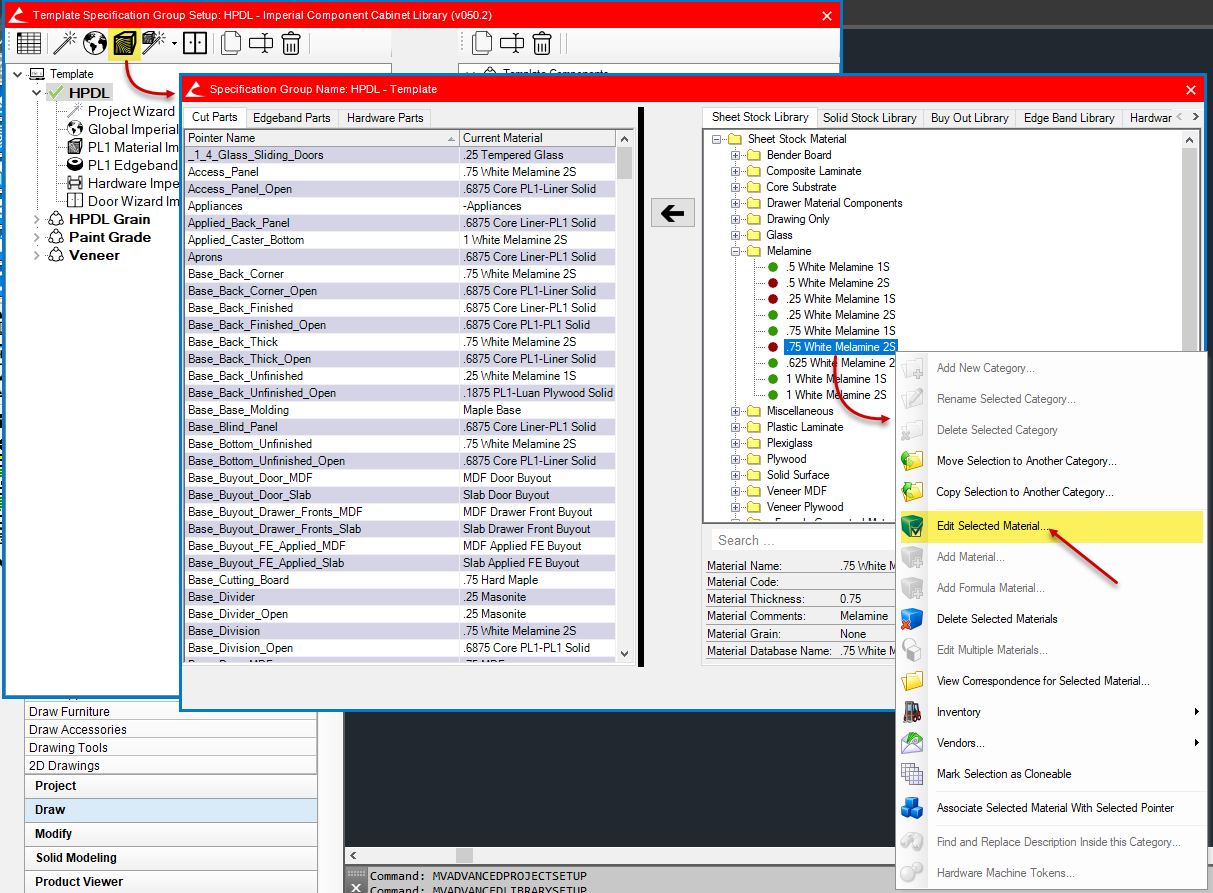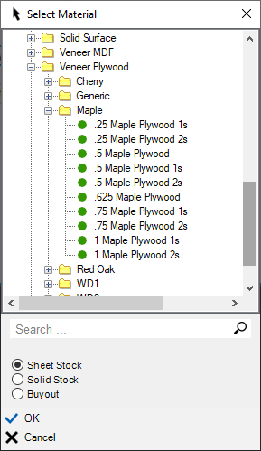 You may also add a new sheet size to an existing material from within the material file (Library Specification Groups > Open Material File > Edit Selected Material). Use the command "Edit Selected Material" from the right-click context menu in the material Sheet Stock Library of a spec group.
