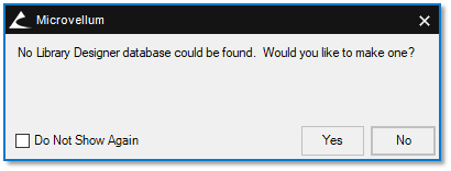 When there is no existing MicrovellumLibraryDesigner.sdf database in the directory referenced above, the following message appears: