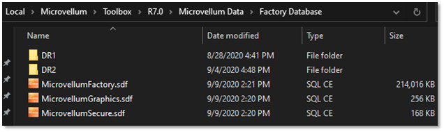 The Name setting refers to the name of your Factory Database. When on SQL CE, the name of the database is MicrovellumFactory, as it appears in Figure 02. When working on the server (SQL), Name refers to the Data Catalog found in the Data Access tab of the Options menu.