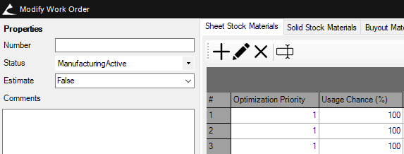 When selecting materials in an operation, Microvellum's optimizer allows for users to assign an optimization priority to specific materials in their material file, to determine which materials should be used up first in the operation. As of