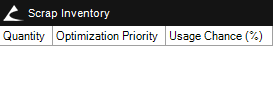 Figure 4: The 'Usage Chance' column present in the Scrap Inventory interface.If Weighted Selection is enabled, the percentage value will also be displayed in the Modify Work Order and Scrap Management UIs, though the usage chance in these interfaces is not visually tallied up to 100 (as it is unnecessary in these two UIs).