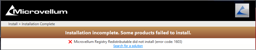 While installing any Microvellum product the user gets error code 1603 or gets the error message “Cannot find Setup.dll”.
