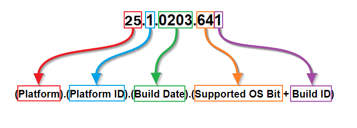 - Build ID: The Build ID increments when more than one build is created on the same day.