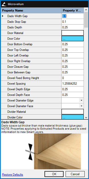 The Solid Model Properties interface allows you to set up the values for parameters to your preferences. Setting up these values will speed up the creation of smart layers. They will also speed up the process of creating products using the Custom Product Builders.