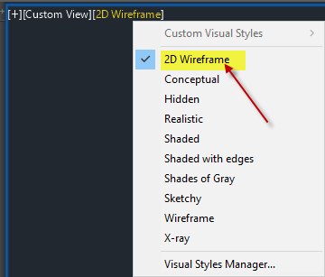 - Click in the right side viewport containing the 3D product and change the Visual Style from X-Ray to 2D Wireframe.