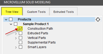 - Another tool that will help you to avoid confusion when working with complicated products is the ability to control the visibility of individual parts, complete categories of parts, or the entire product. For example, in step #17 above, we turned off the visibility of everything but the construction path so we could easily add a vertex. Without that ability, it can be challenging to select the appropriate entity.
