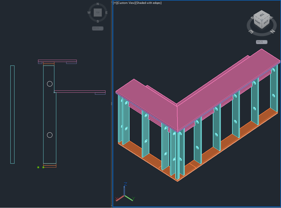 - Replace the section profile associated with that new stud located at the corner. Click: Extruded Tools > Vertical Entities > Select an Alternate Profile.