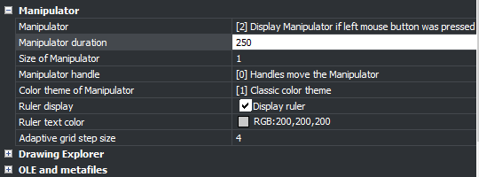 - Ruler Display: Control whether a ruler will appear when entities are being modified by the Manipulator.