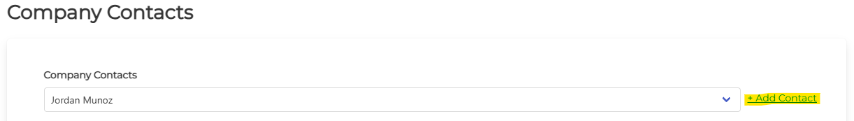 At the top of the interface, administrators can select from the list of contacts associated with their company via a dropdown list or create new contact to associate with their company.