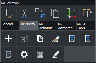 - Frequently Used Commands: The top section of the QUAD contains a small strip of frequently used commands. The QUAD intuitively notes which commands are used often when working with different entities and thus displays those commands first when one such entity is being hovered over or selected.