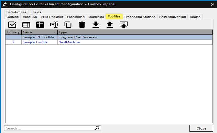 Each Tool File row can be individually selected by single left-clicking. Double left-clicking a row will open a new window to edit the Tool File in the user interface. The user can select multiple rows while holding ctrl + left click to select only the rows desired. Additionally, the user can hold shift while selecting two rows, and all the rows in-between will be selected.