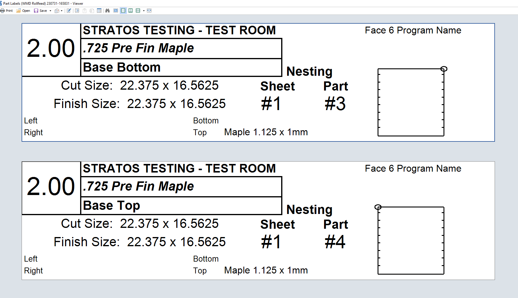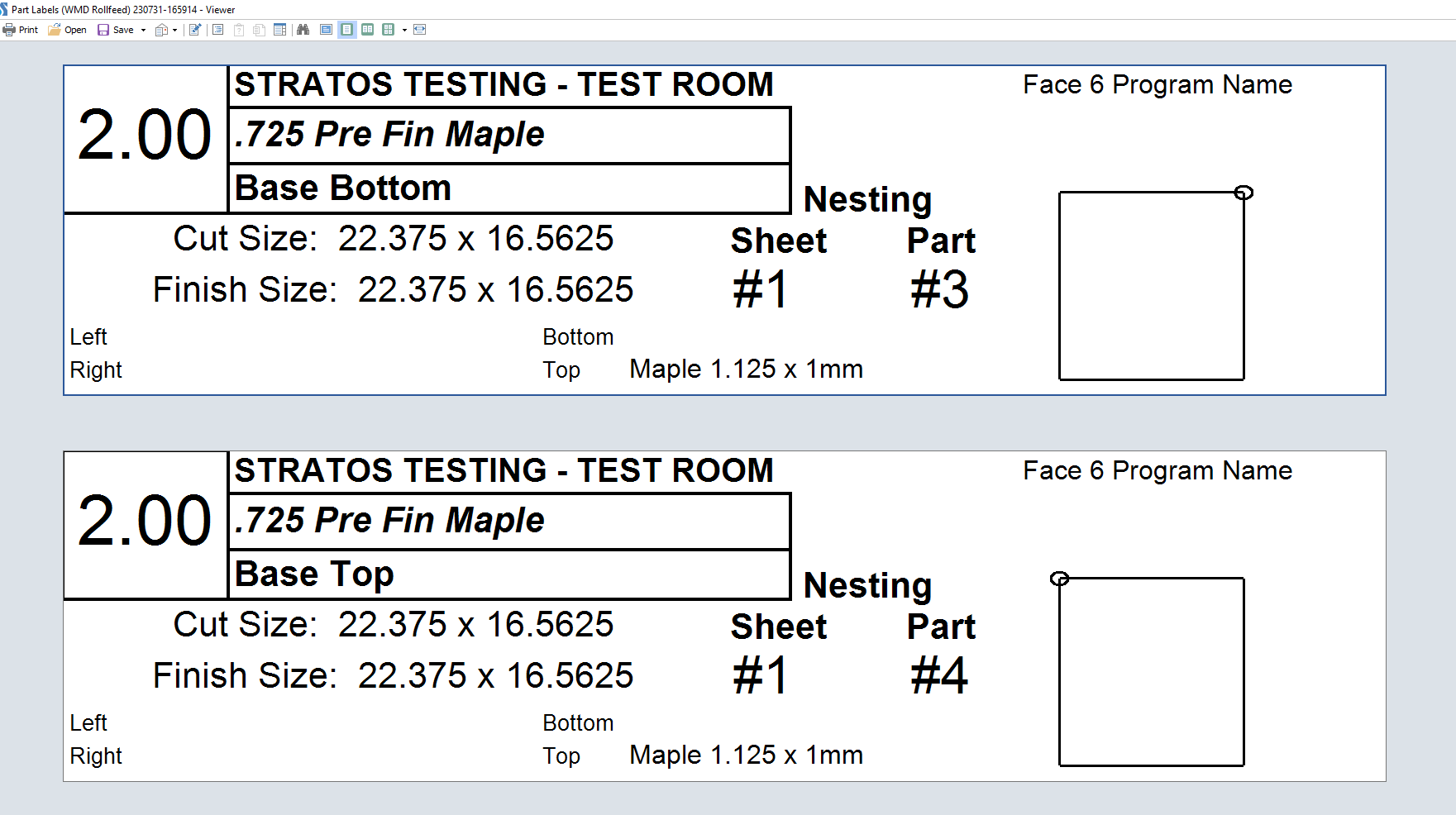 - Users reported an issue when creating labels for a product during processing, wherein a label for a part that had horizontal drilling applied to it did not reflect the horizontal drilling aspect visually within the label. The image of the product distinctly lacked the lines to represent the necessity or presence of horizontal boring on the part. This issue has been resolved- label images should now accurately reflect any boring that is applied to a given part.