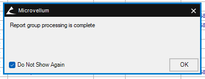 Figure 1: Report group dialogue box. | Figure 2: Report group "Do Not Show Again" option. |