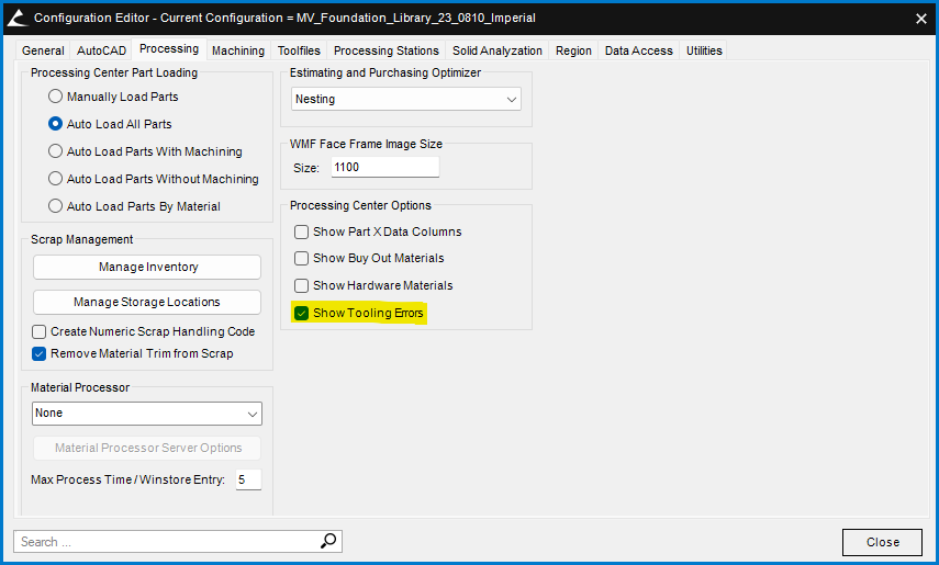 Figure 5: Show Tooling Errors- The "Show Tooling Errors" option was found to have additional processing errors in need of addressing, as there were issues with its functionality. These issues have been resolved- enabling and disabling the option should hide or display tooling error messages as intended.