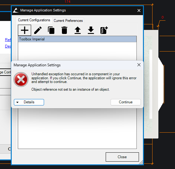 - When managing configurations and attempting to add a new configuration in Toolbox BSB, certain users experienced an unhandled exception error. This issue was found to be experienced by users who had Toolbox BSB installed, but no other Microvellum software installed on their device, as the software was scanning for other installations so it could create identical configuration conditions. A coding change has been applied to resolve this issue, and users should be able to create configurations without error.