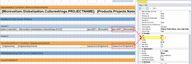 Copy the following expression into the text component in the GroupHeaderBand1 databand, or modify as needed: