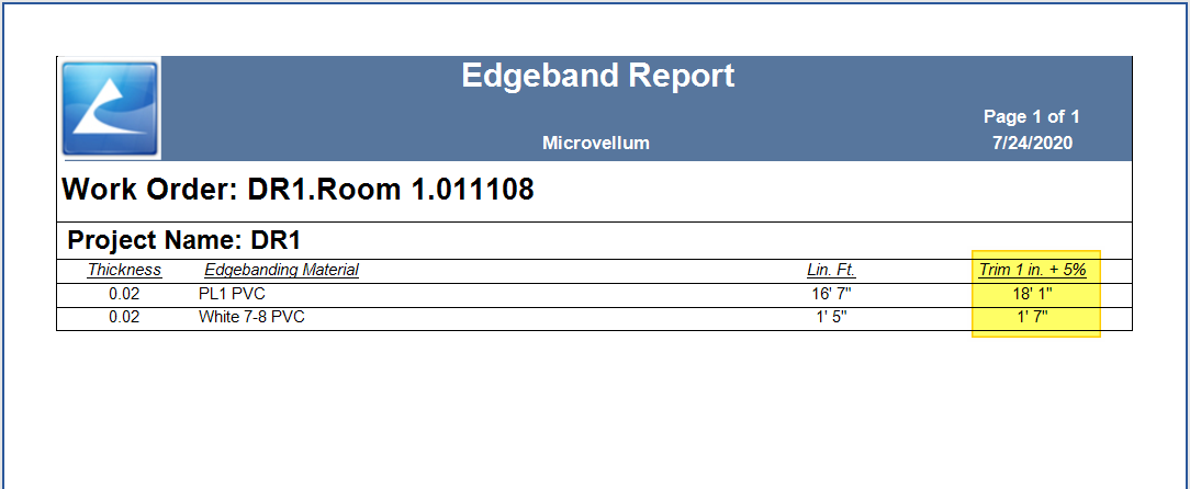 These step-by-step instructions apply only to the default Microvellum Edgeband Report, but may be applied in principle to other reports.