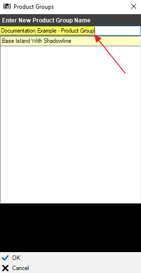 After selecting this command, select the products in the drawing that you want to save together. In addition to products, you can also select walls drawn in the drawing to save with the product group. You will then need to select a base point for this product group. This point will be used as the insertion point when you are drawing this product group back into a drawing. The product group's window will be displayed where you can give this product group a name.