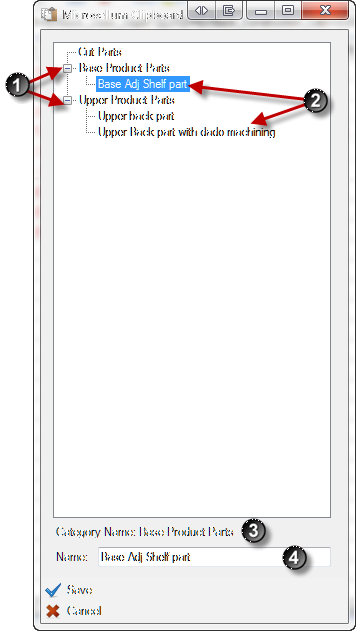 When copying an element to the clipboard, the Microvellum Clipboard window will be displayed. Right-clicking in the main window will allow you to create categories to help organize the elements you will be saving to the clipboard. To copy the element, select a category, and then give the element a name. The name can be anything you want and is only used within this window to help identify what has been saved to the clipboard.