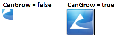 If the Can Grow property is set to true, the component can automatically increase its size if the information or image contained within it does not fit in the available space. If it is set to false, the information or image is cropped to the component size. See Figure 01.