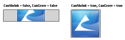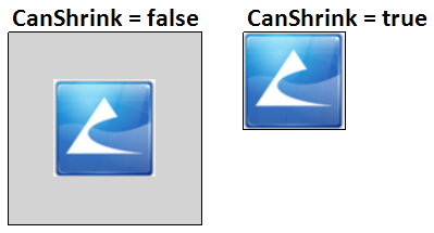 If the Can Shrink property is set to true, the component can automatically reduce its size to fit the size of the information or image being displayed. If it is set to false, the component remains the same size leaving unused space around the information it contains. See Figure 02.